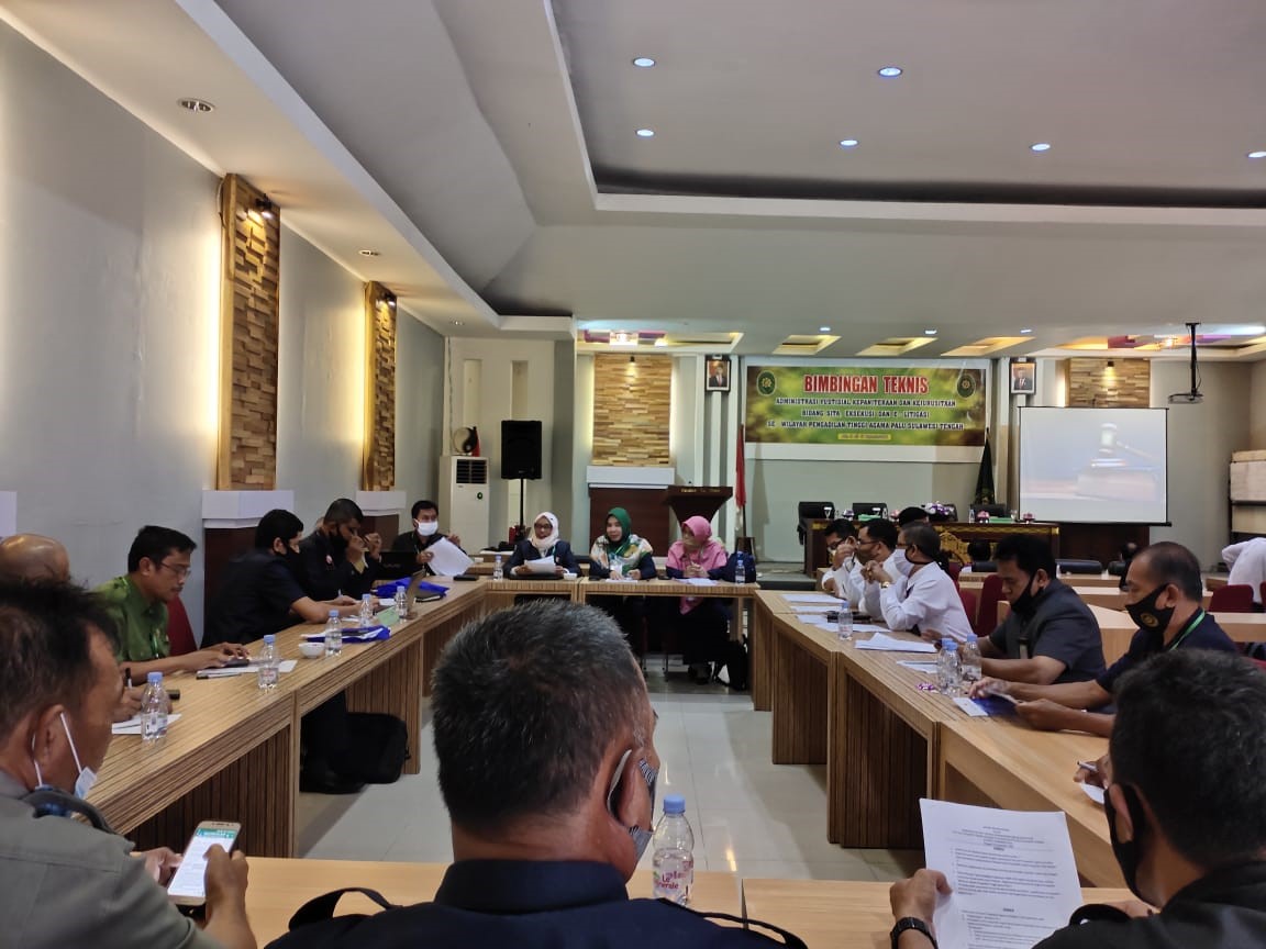 Pengadilan Tinggi Agama Palu melaksanakan kegiatan Bimbingan Teknis Yustisial Bidang Kepaniteraan dan Kejurusitaan di Lingkungan Peradilan Agama se-wilayah Pengadilan Tinggi Agama Palu. Sebagaimana dalam Surat Panggilan Peserta Bimtek Nomor: W19-A/1180/PP.00.3/IX/2020 tertanggal 02 September 2020 tersebut PA Bungku turut dipanggil untuk mengikuti kegiatan tersebut yakni Ketua, Panitera dan Jurusita hal mana kegiatan tersebut dilaksanakan mulai hari Senin sampai hari Rabu (14 s/d 16 September 2020) bersama dengan 10 Satker Pengadilan Agama Tingkat Pertama lainnya dengan total jumlah peserta sebanyak 45 peserta. Acara dimulai dengan Check In peserta dilaksanakan jam 13.00 WITA bertempat di Hotel Paramatsu yang beralamatkan di Jalan Domba Kota Palu.