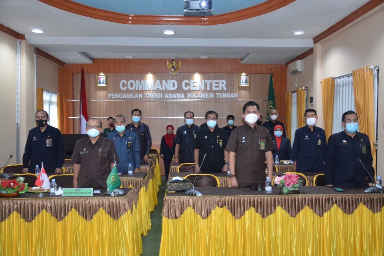 Selasa, 1 Juni 2021, PTA. Palu mengikuti peringatan hari Lahir Pancasila secara virtual melalui kanal YouTobe Badan Pembinaan Ideologi Pancasila yang diikuti oleh jajaran Pimpinan PTA. Palu, Hakim Tinggi dan pejabat Fungsional/Struktural PTA. Palu di ruang Command Center PTA. Palu.